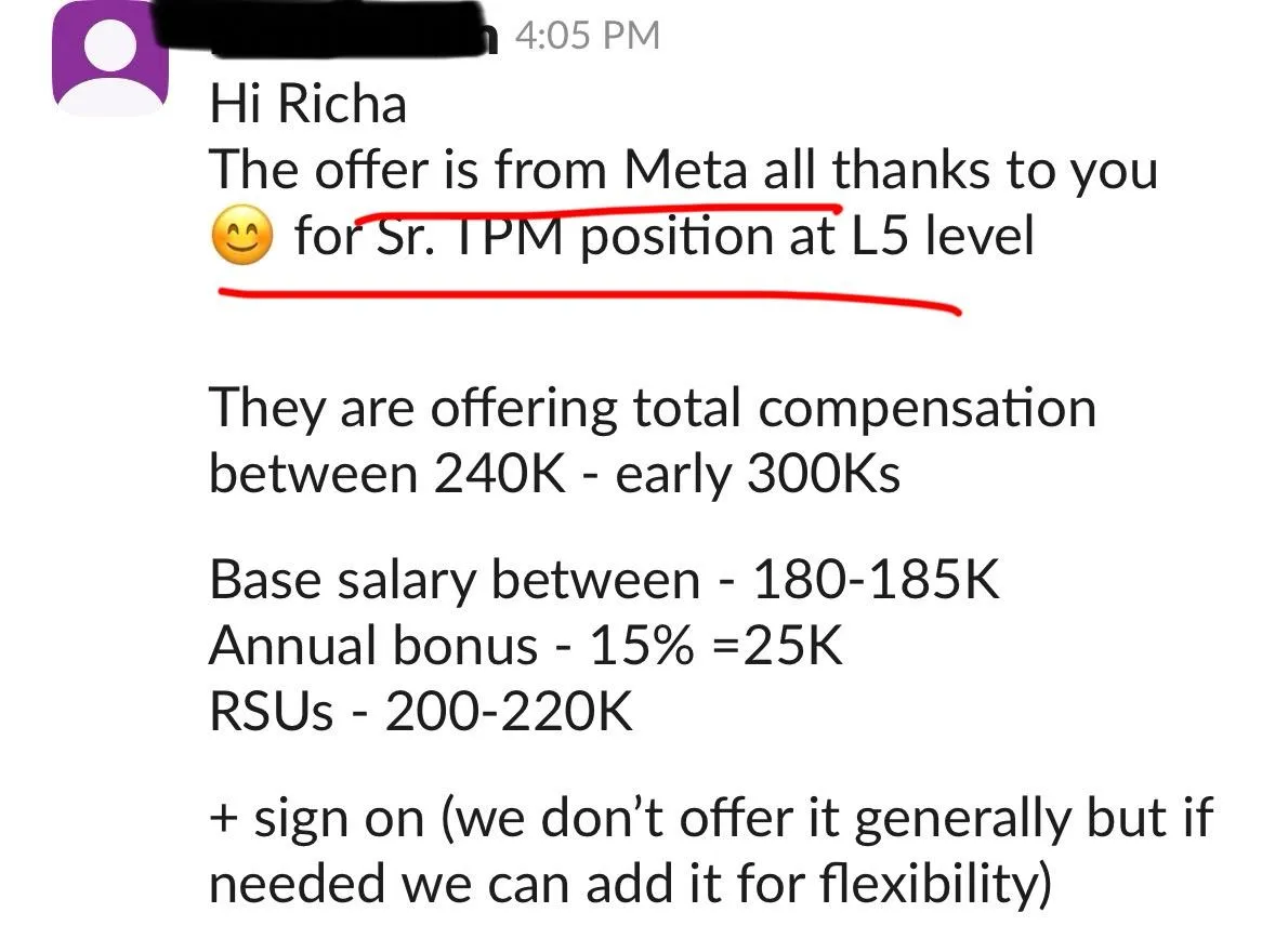 "Richa took the preparation for the interview to a completely different level. She know exactly what to do to get interviews, what to say in the interviews, and how to approach it by thinking in frameworks. I went from rambling in my interviews to confidently landing my dream role with over a $50k compensation increase. More than anything, I learned to respect myself and the value I bring to the table, so that the right company can see it, else I confidently walk away."